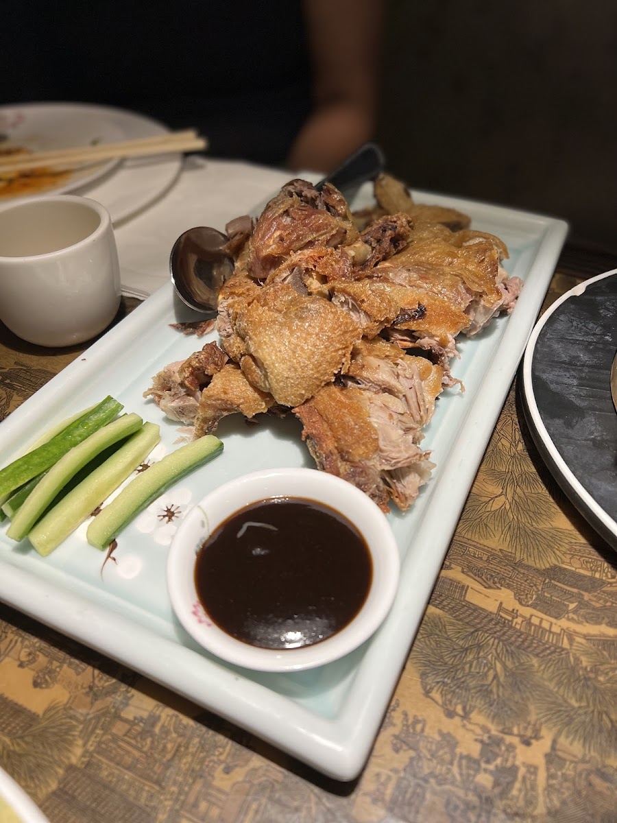 Crispy duck was absolutely delicious Hot and sour soup had a kick for sure the chinese broccoli very well seasoned garlicy great service long wait if you go at a busy time