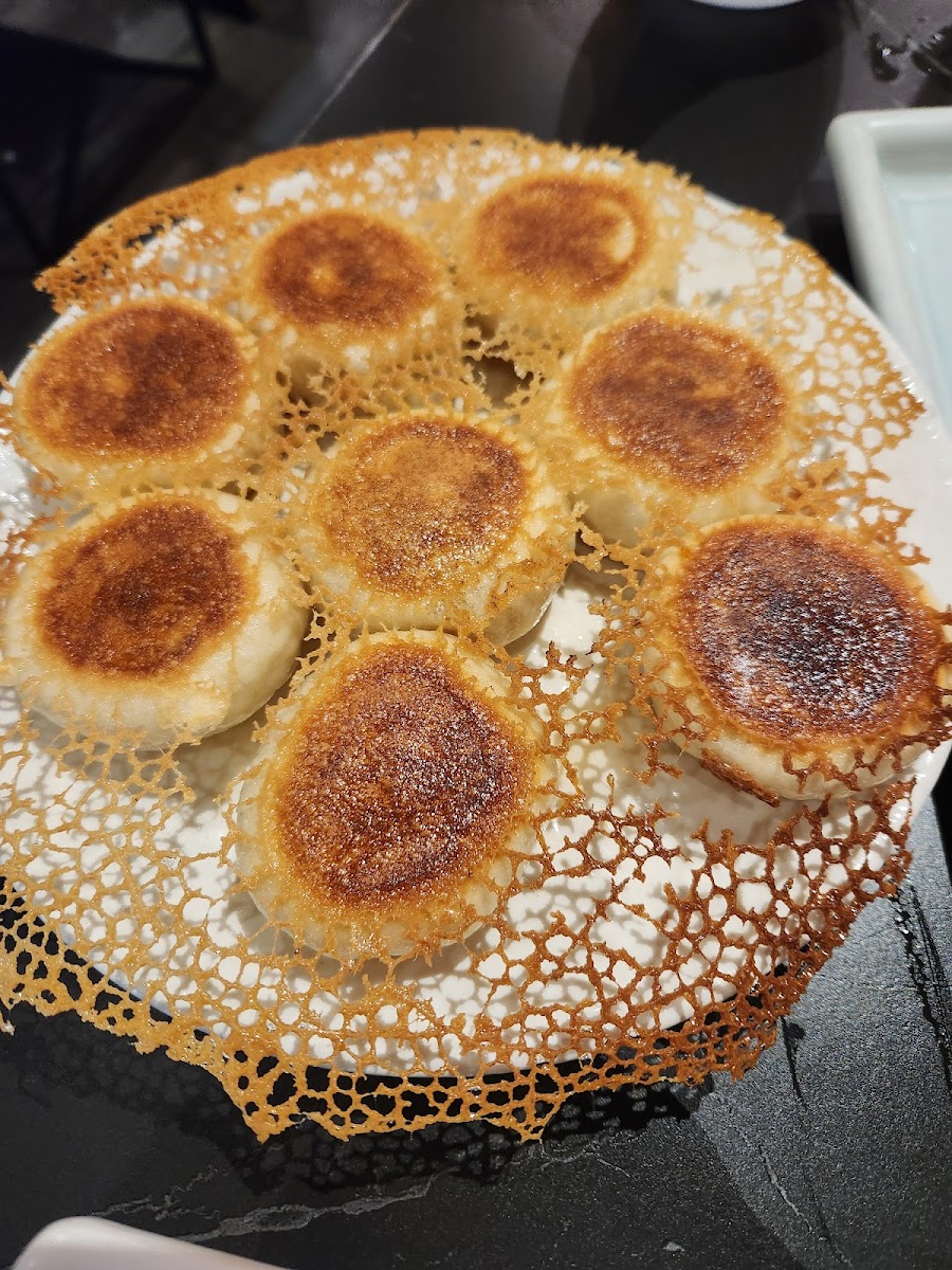We were the last table they were taking for the night, so super appreciative we didn't have to go searching for another dinner spot! We were HUNGRY and ordered quite a bit for our first visit too. We got Mama's special pancake with scallion ($10.99), Mama's special pan fried pork buns ($17.99), cabbage and pork dumplings ($15.99), signature salted egg yolk prawns ($25.99), and 5 piece Chinese donut ($14.99). Everything was delicious! We had wanted the sesame balls initially, but they were already sold out for the night, so we got the Chinese donut instead. Let me tell you, we were able to eat all the other dishes between just the two of us, but the Chinese donut is heavy and really should be shared family style in a group! Our friendly server tried to warn us that we might not want to try to eat all 5 pieces in one sitting. We should have heeded her warning up front! Despite that eating setback, we loved the dining experience here and can't wait to be back, especially to try the things we had missed the first time! Parking here will be crowded in this plaza, so be patient in driving back and forth for a spot.